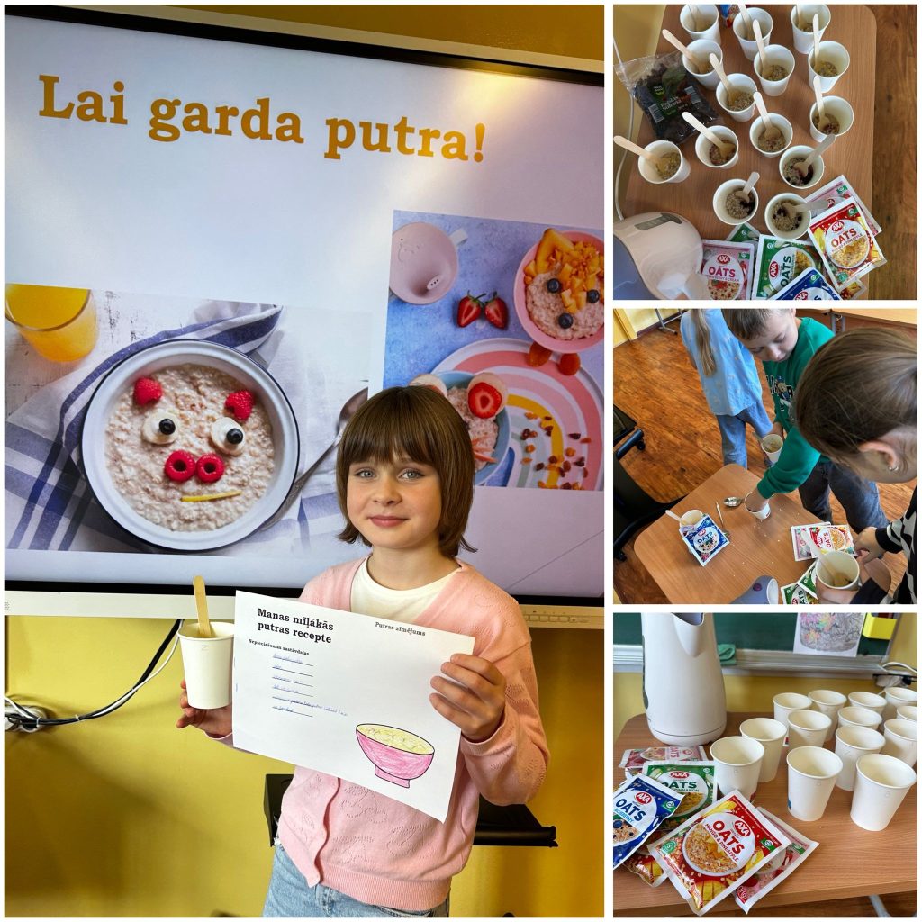 Pasaules putras diena – garšīgi un izglītojoši! 🥣 10. oktobrī 2., 2.b un 3.b klašu skolēni atzīmēja Pasaules putras dienu, piedaloties izglītojošās un gardās aktivitātēs. Bērni tika informēti par putras nozīmi sabalansētā uzturā un tās pozitīvo ietekmi uz augšanu un veselību. Skolēni iepazinās ar dažādiem putru veidiem – no tradicionālajām auzu pārslām līdz mazāk zināmiem, bet vērtīgiem graudaugiem. Kopā ar skolotājām tika gatavota putra – skolēni aktīvi piedalījās gan produktu izvēlē, gan gatavošanas procesā. Pēc tam visi ar prieku baudīja pašu gatavoto maltīti. Izsakām pateicību skolotājām Annai, Jeļizavetai un Anastasijai par rūpīgi sagatavotajām aktivitātēm un gardo, izzinošo mācību stundu!