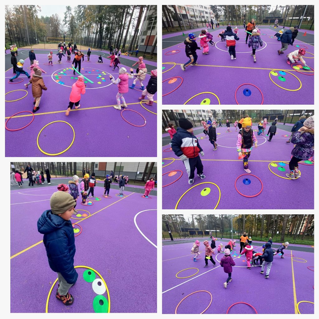 Mūsu skolas pagalms ir lieliski piemērots sportiskām nodarbēm, un pirmsskolēni to izmantoja radoši: