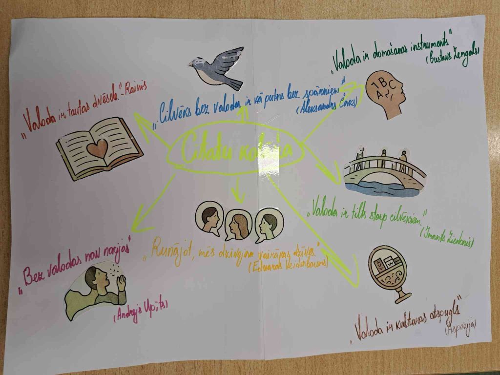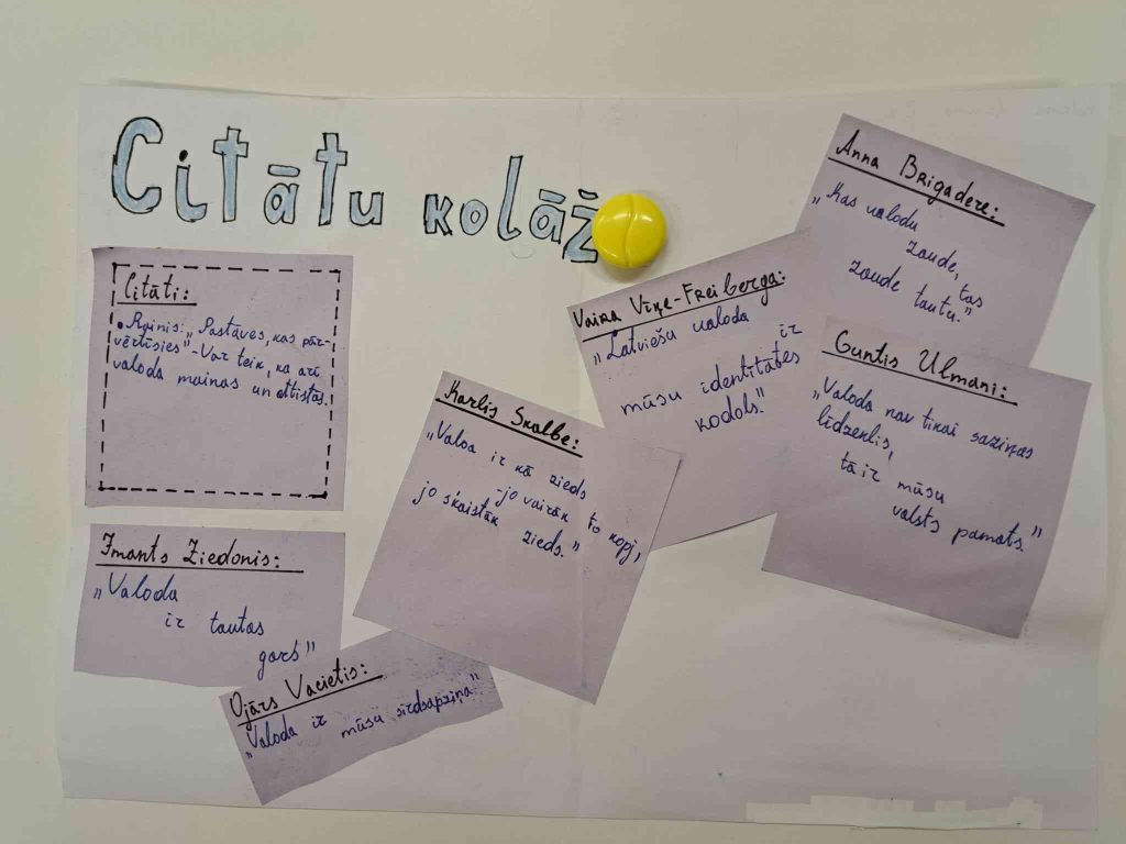 Toties 7.-9. klašu skolēni veidoja plakātus ar faktiem un citātiem par latviešu valodu.