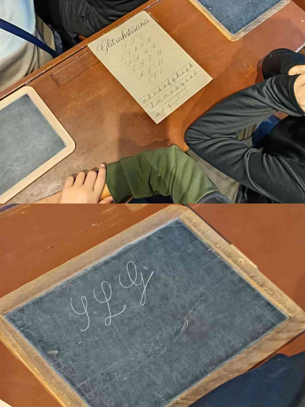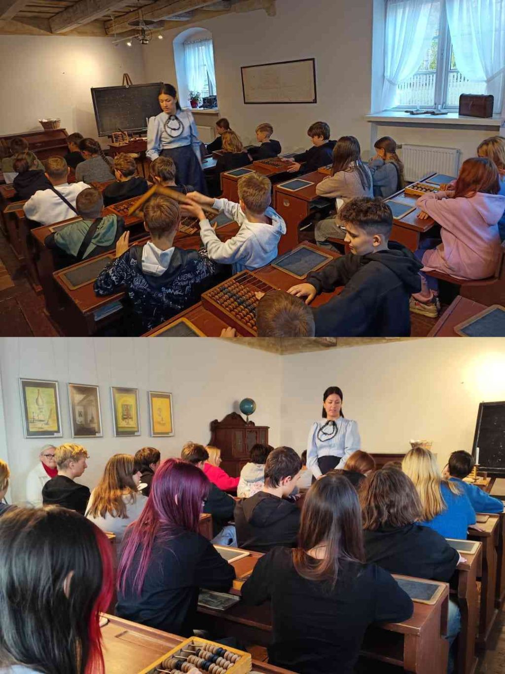 Pirmā pietura bija Ventspils muzeja Amatu māja. Piedaloties nodarbībā, skolēni uzzināja, kā norisinājās mācību process senākos laikos. Bērni iejutās mācību procesā, ievērojot senās skolas noteikumus – abas rokas uz galda, mugura taisna, drīkst celt tikai labo roku un atbildēt uz skolotāja jautājumiem pilnos teikumos stāvot kājās. Matemātikā bērni apguva prasmi skaitīt ar skaitīkli. Latviešu valodā mācījās glītrakstīšanu, izmantojot burtu parauga lapu, tāfeli un grifeli. Senās skolas skolotāja arī iepazīstināja ar tā laika soda veidiem, no kuriem visbriesmīgākais bija tupēšana uz zirņiem.