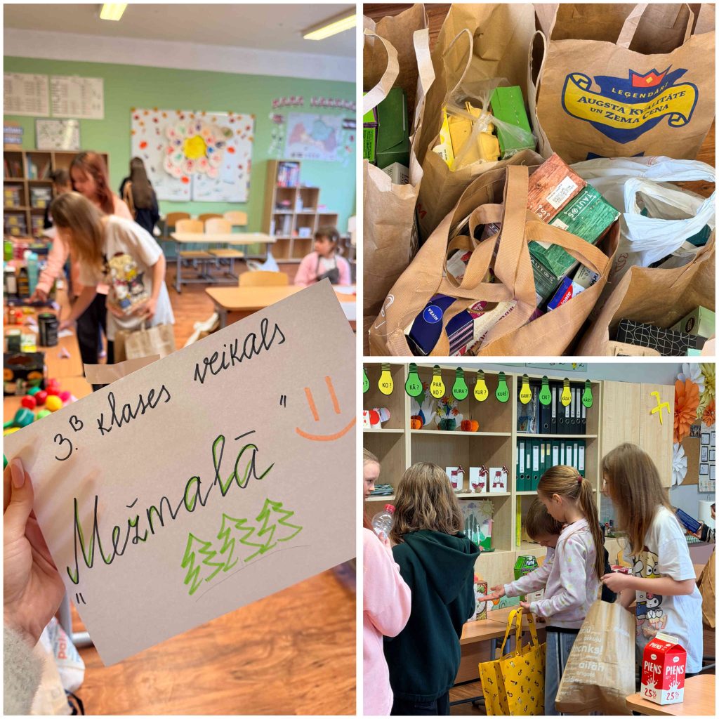 3.b klase spēlēja spēli “Iepērcies apdomīgi”, kuras laikā skolēni dibināja un vadīja savu “veikalu”. Pēc spēles visi pārrunāja, kuras izvēles bija videi draudzīgas, kuras – mazāk draudzīgas un kāpēc. Skolēni kopīgi izveido plakātu “Zaļā pircēja noteikumi”.