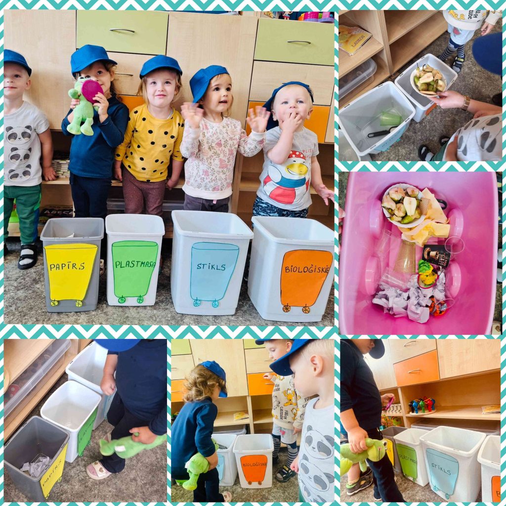 Paši mazākie, pirmsskolas grupiņa ,,Rudzupuķes”, aktīvi piedalījās atkritumu šķirošanā – bērni mācījās, kā pareizi šķirot atkritumus un kāpēc tas ir svarīgi mūsu planētai.