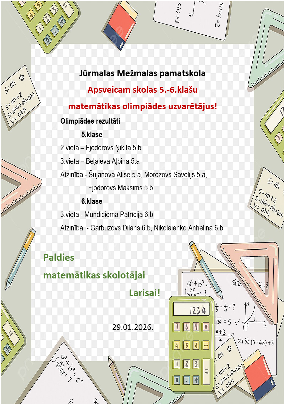 Paldies skolotājām Ingai V., Indrai, Anastasijai, Svetlanai, Darjai, Olgai, Jeļizavetai, Annai, Elīnai!