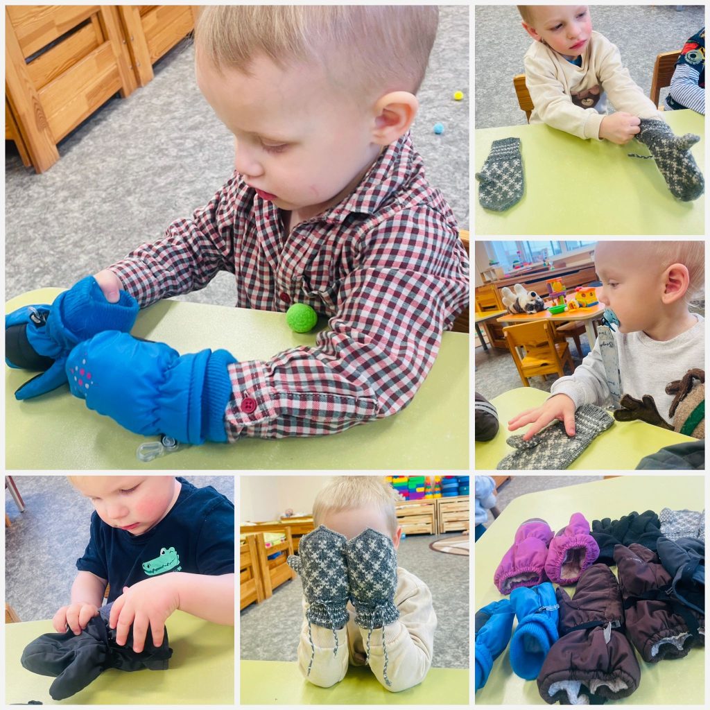 Mācījās arī paši vilkt cimdiņus – mazās rociņas cenšas un priecājas par katru izdošanos.